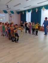 Дети рассказывали о первом космонавте Ю. А. Гагарине, строили ракеты из модулей, много тренировались и соревновались между командами.