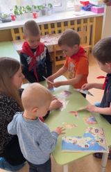 Для каждой команды был разработан маршрут передвижения по определенным станциям: «Отгадай-ка»- символы России; «Сказочная»; «Мой город»; «Спортивная» и станция «Победа». На каждом этапе команды встречали ведущие, они сообщали детям и родителям задание. За правильное выполнение задания команды получали фрагмент картинки, чтобы в конце игры сложить общую большую картину - интерактивную карту России.