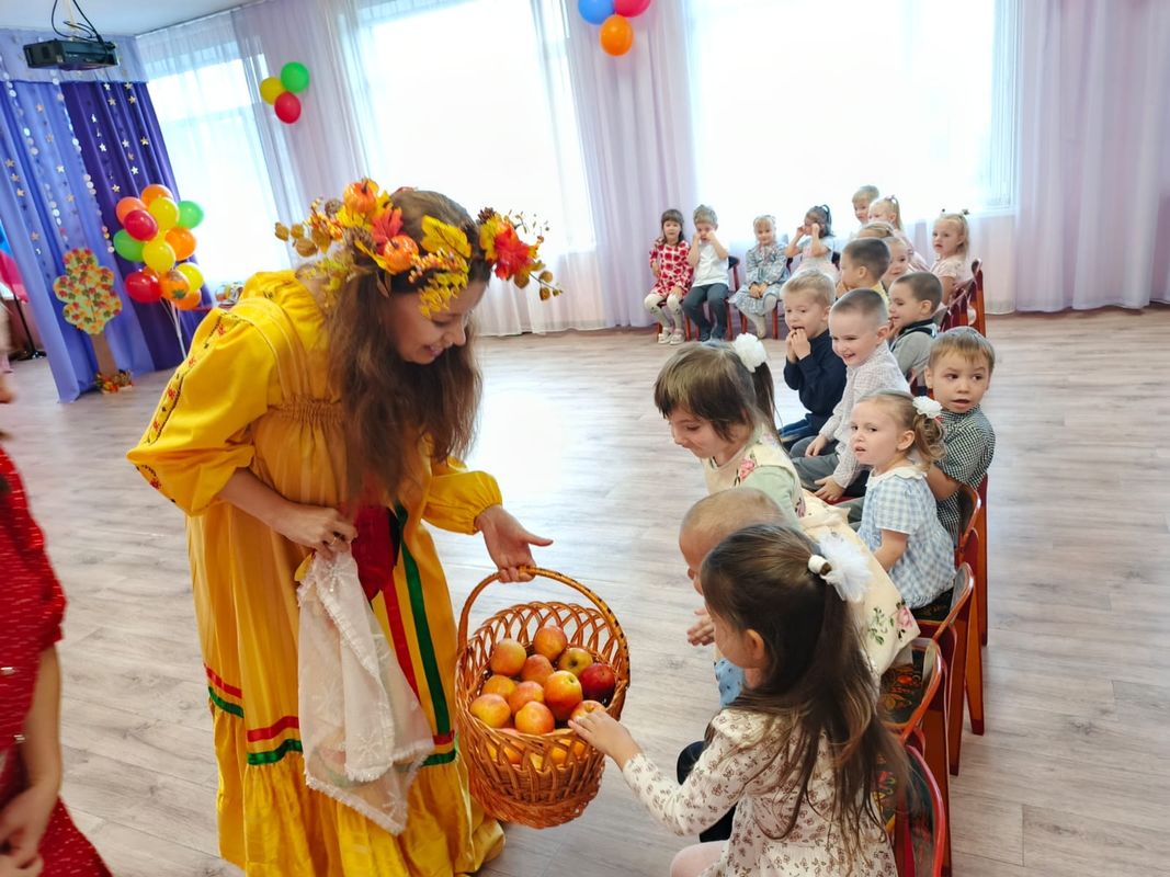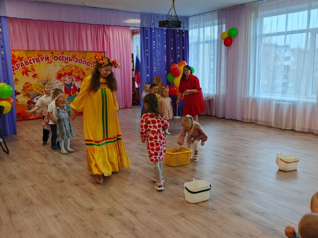 В гости к ребятам пришла красавица Осень. Для неё дети пели песню, танцевали, играли в весёлые игры и отгадывали загадки. Самым ярким и запоминающимся эпизодом стал сюрпризный, волшебный момент!
