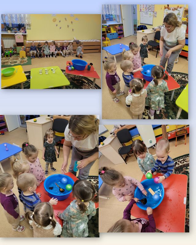 Чтобы ответить на эти вопросы воспитатель второй группы раннего возраста «Светлячок» (Корпус №3 «Ладушки») Финикова А.А. провела с детьми серию игр-экспериментов, где малышам представилась возможность переливать, пересыпать, кидать, топтать и даже ловить солнечных зайчиков.