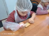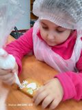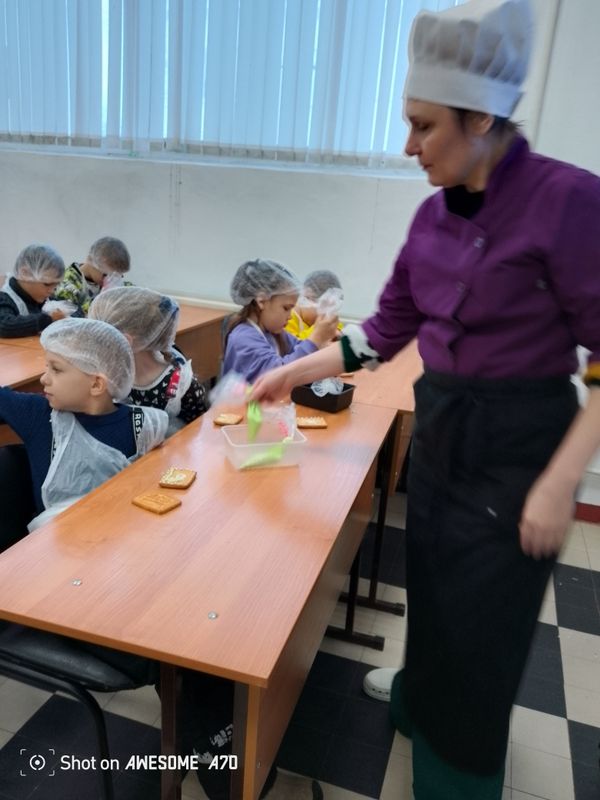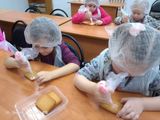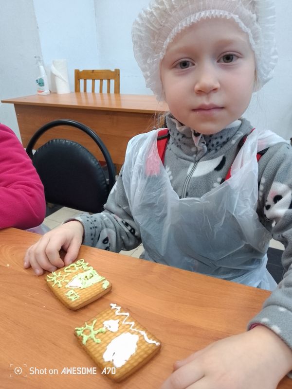 Ребята подготовительной группы «Солнышко» (корпус «Радуга») участвовали в мастер-классе по росписи печенья. В начале встречи дети познакомились с профессией кондитер, увидели как правильно работать с кондитерским мешочком и глазурью. Каждый участник смог воплотить в жизнь свои кулинарно-художественные фантазии.
