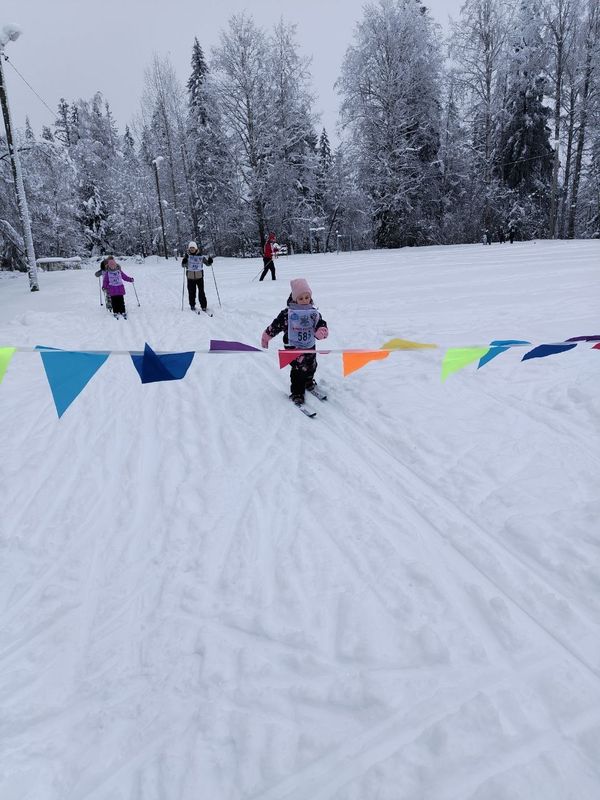 В этом году впервые приняли участие в зимнем мероприятии дошколята. Три смелых воспитанницы группы «Фантазеры» детского сада п. Рускеала вышли на лыжню и достойно прошли свою дистанцию.