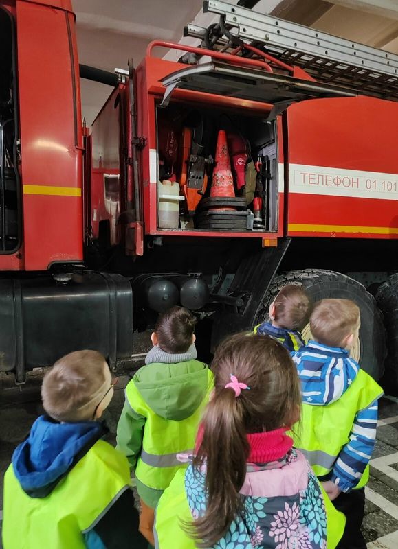 Цель экскурсии — не только закрепить знания о правилах противопожарной безопасности, но и познакомить детей с профессией пожарного.