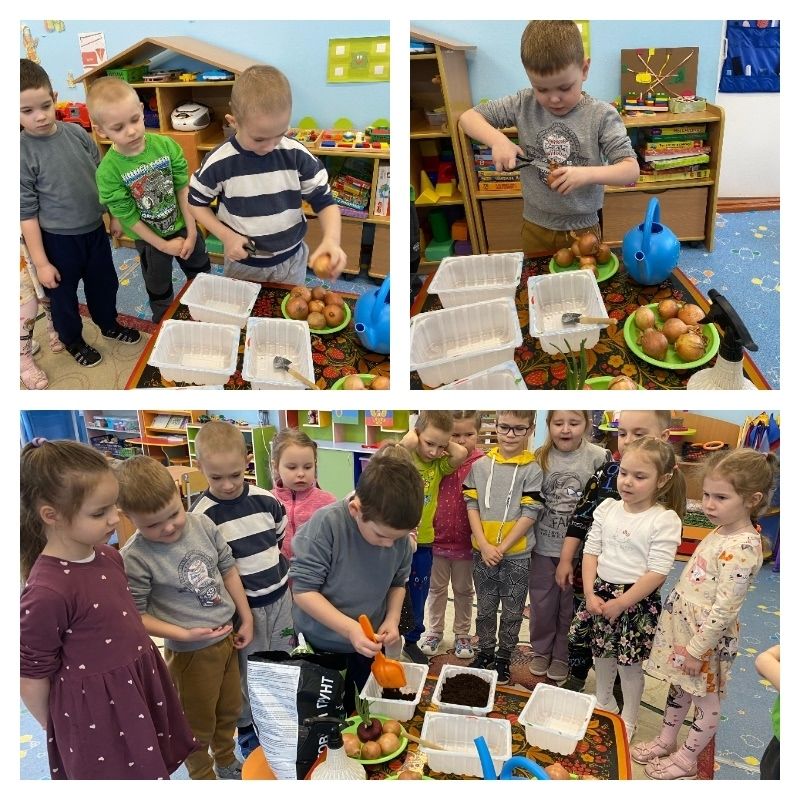 Процесс посадки лука для дошколят был интересным и все с нетерпением ждали результат.