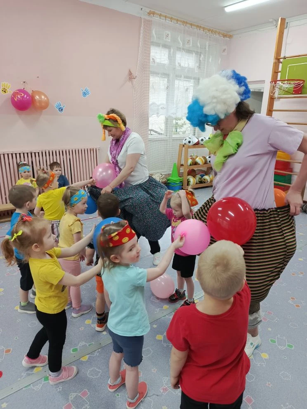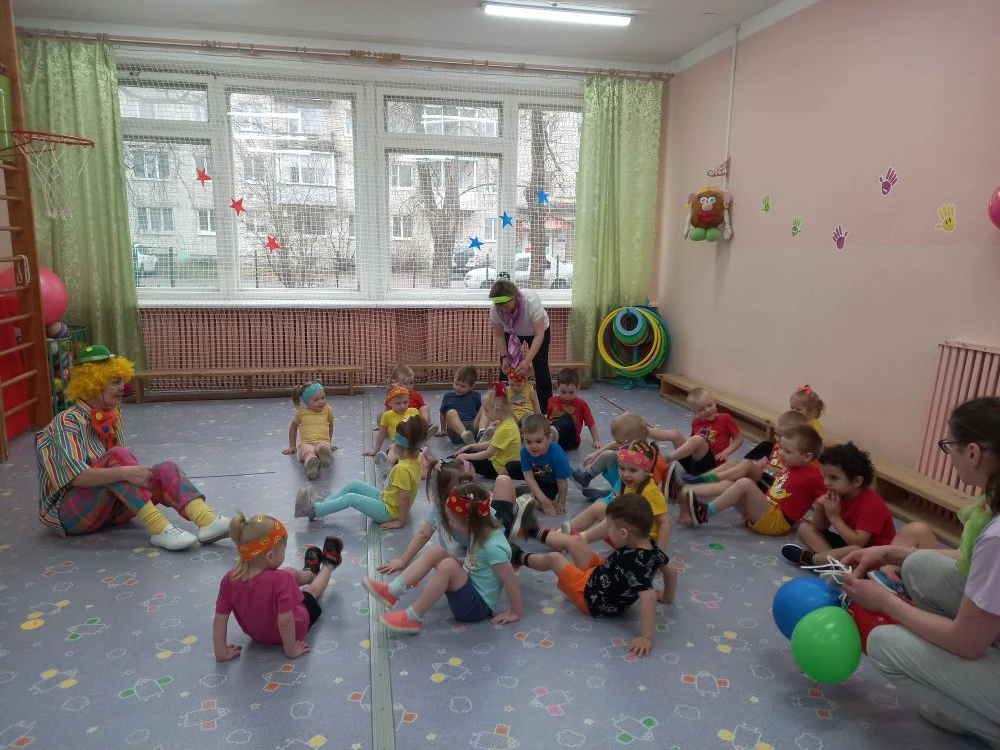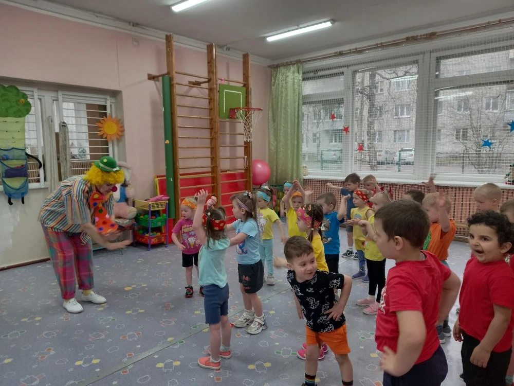 К воспитанникам младшей группы «Рябинка» и средней группы «Колокольчики» (Корпус №6 «Лесовичок») на спортивное развлечение «День рождения клоуна Тяпы» пришёл весёлый клоун.