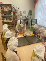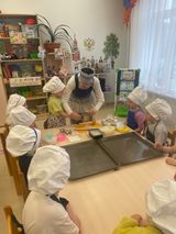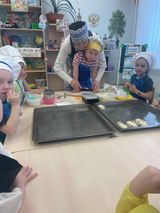 Работа закипела. Дети очень старались: раскатывали, прищипывали, смазывали получившиеся изделия.