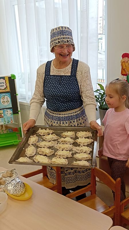 Надежда Егоровна провела с ребятами мастер - класс «Печем карельские калитки», рассказала о необходимых ингредиентах, как замешивать тесто, как раскатывать сканцы и прищипывать крайчики.