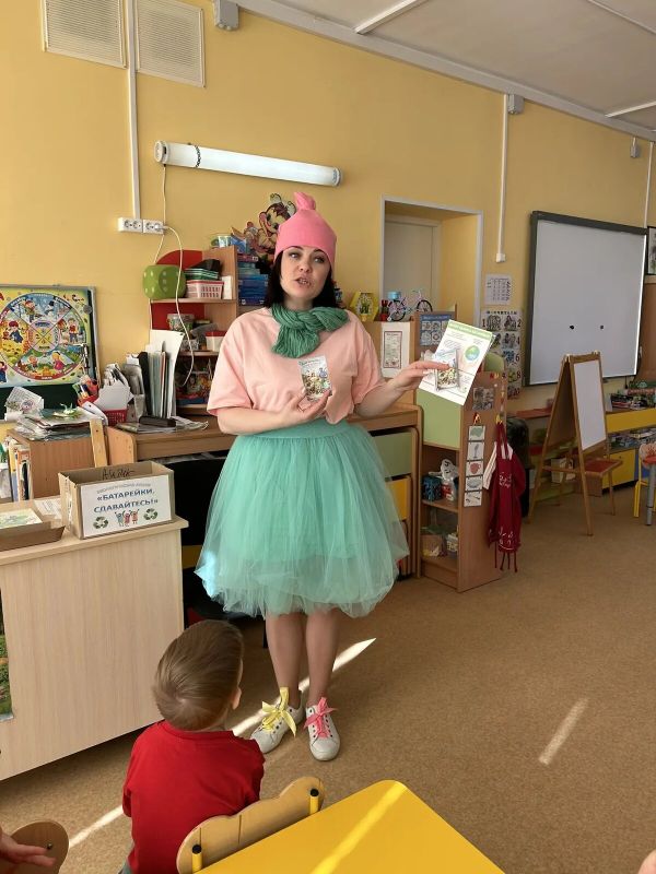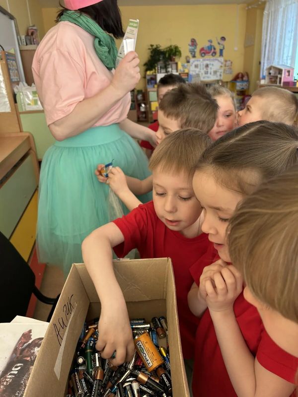 В гости к детям пришла Умница, она рассказала, о том какой вред нашей природе приносят батарейки, если их утилизировать неправильно. Ученые подсчитали, что одна батарейка может отравить пространство, на котором растут 2 дерева, живут 1 ежик, 2 крота и несколько тысяч дождевых червей.